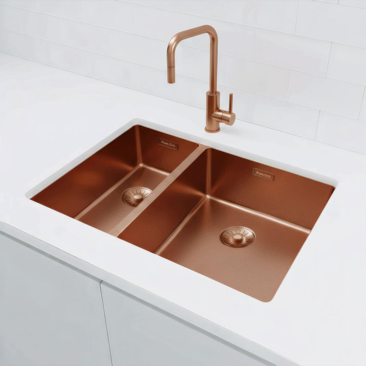 Pure.Sink Exclusivo Copper sink 18x40 / 34x40 cm 10mm radius undermount, flush mount, and top mount PEX183440-62.