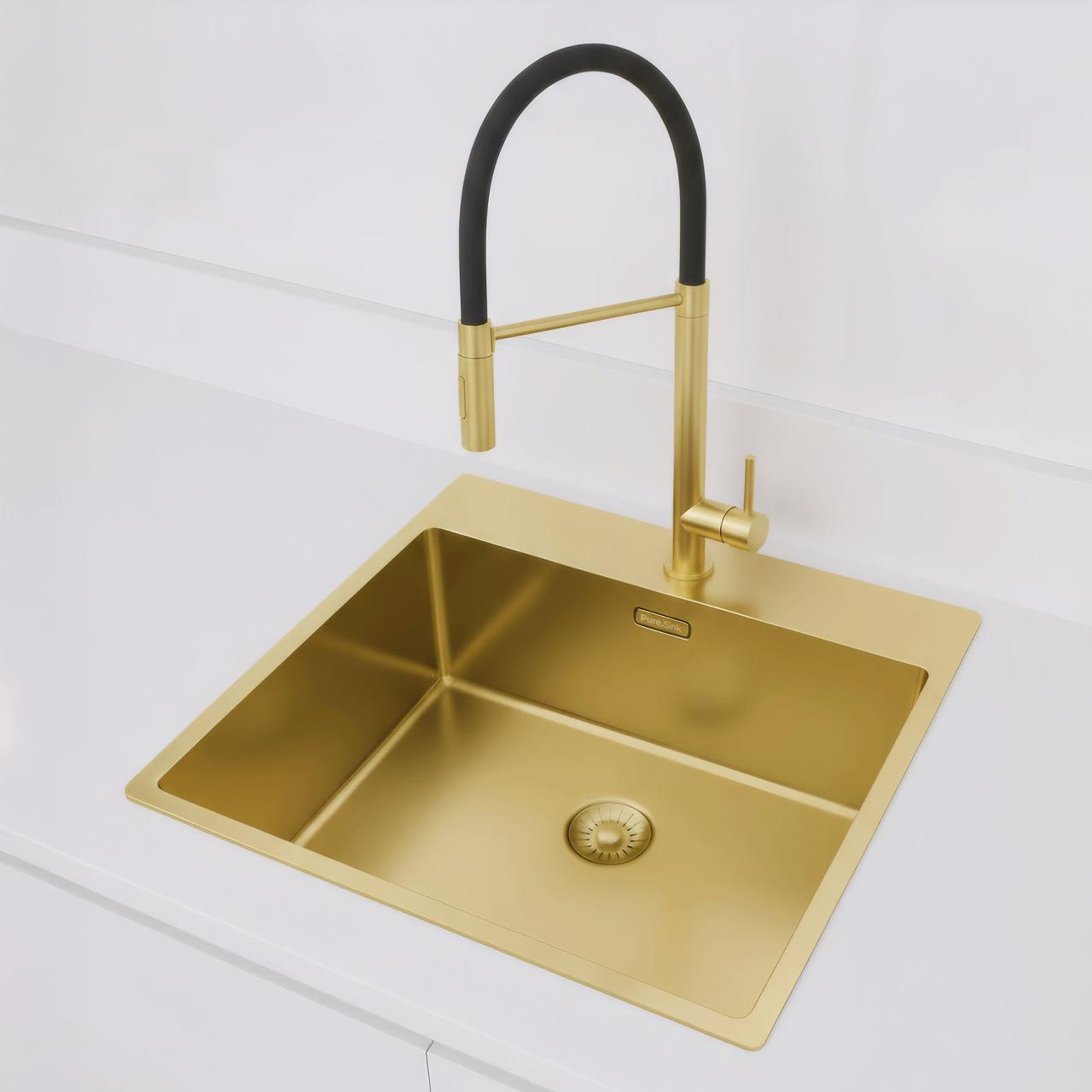 Pure.Sink Exclusivo Gold sink 54x52 cm Tapwing with tap hole bench 10mm radius PEX5040T-60.