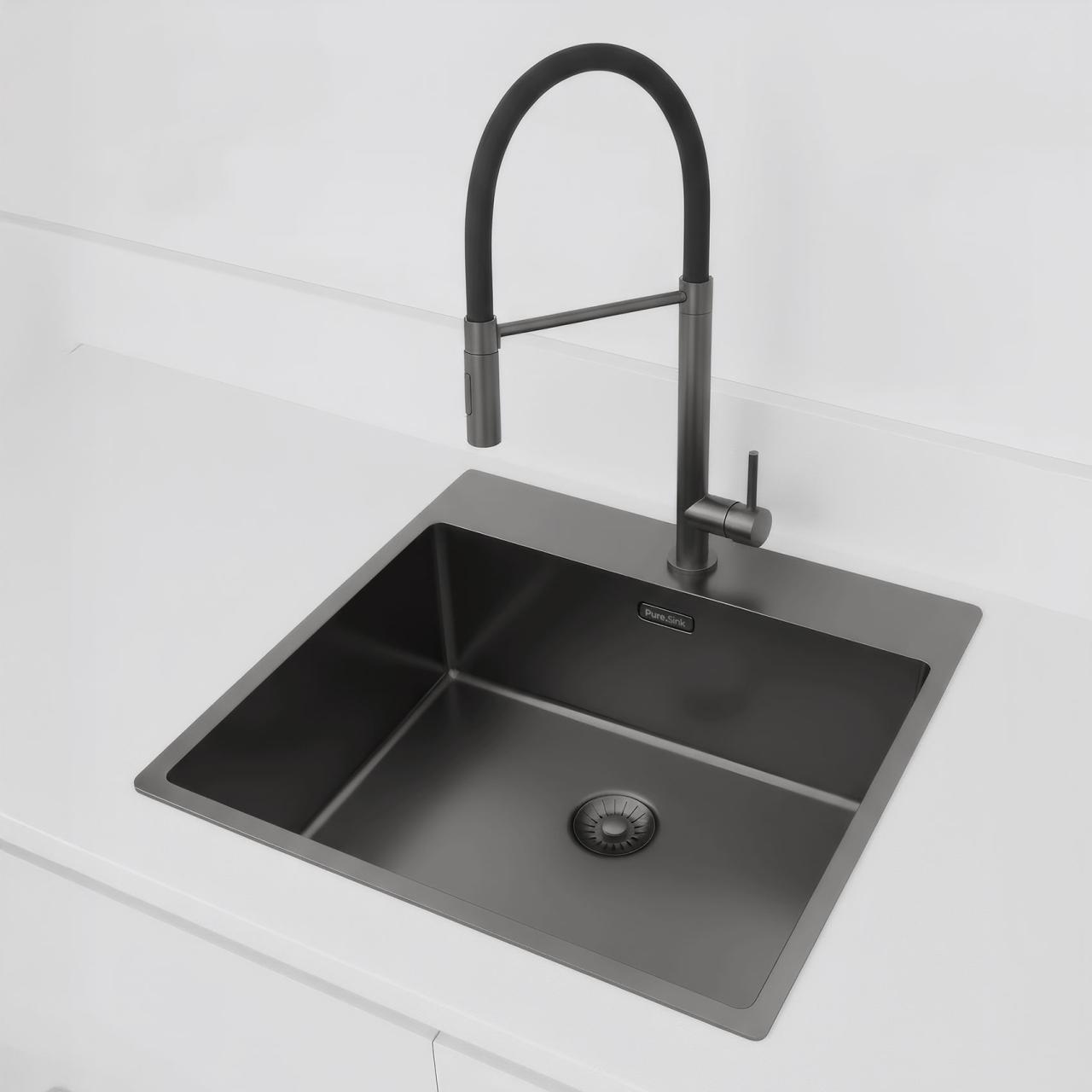 Pure.Sink Exclusivo Gun Metal sink 54x52 cm Tapwing with tap hole bench 10mm radius PEX5040T-61