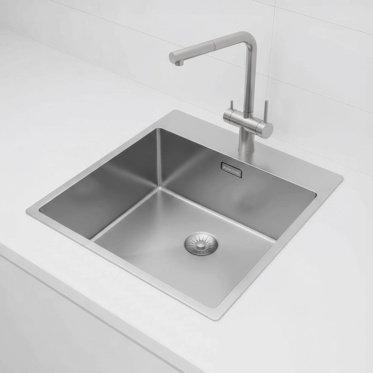 Pure.Sink combines style, functionality, and innovation in its collection of sinks and kitchen faucets. With elegant EU design, the products are perfectly suited for modern kitchens. The stainless steel sinks feature an integrated plug for optimal hygiene and offer three installation options: undermount, flush mount, and inset mount. The pressed design ensures seamless construction and easy cleaning.