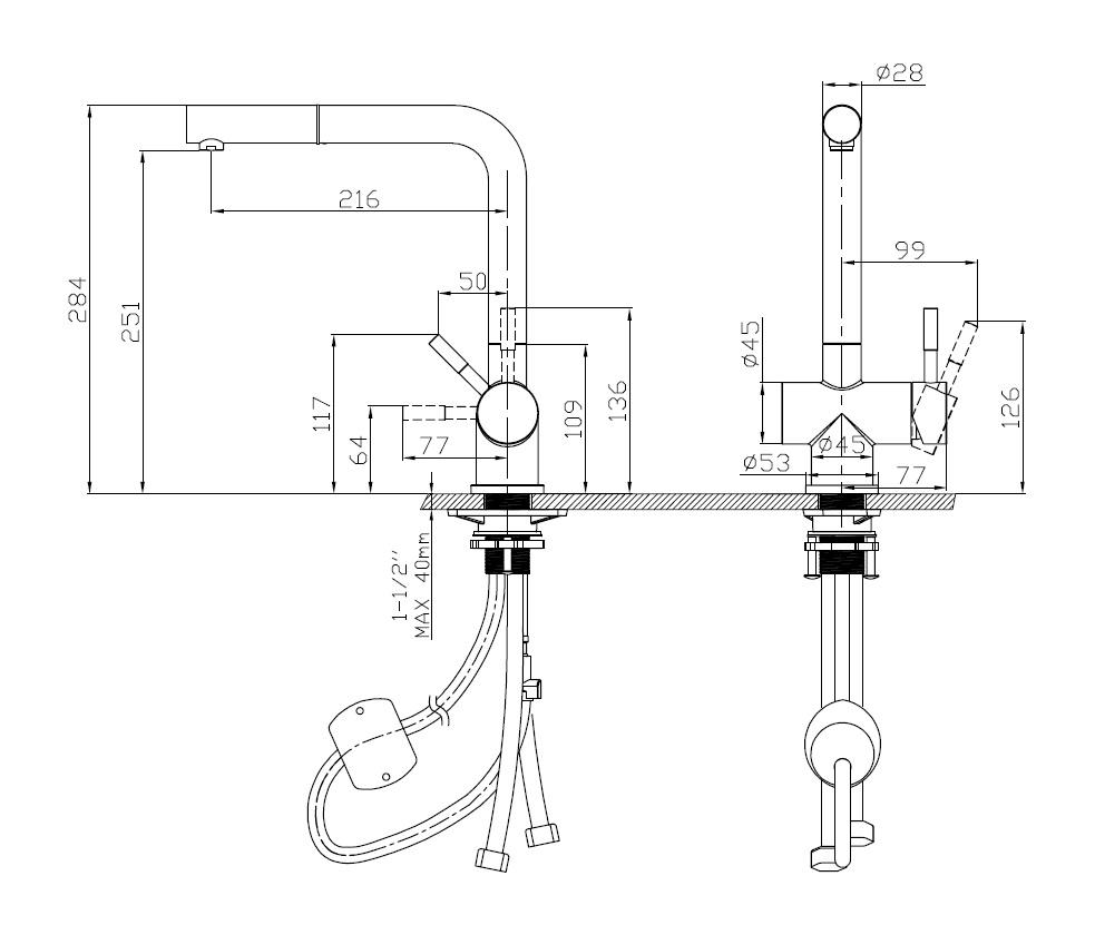 With a solid construction of 304 stainless steel and high-quality components such as the Sedal ceramic cartridge and the Neoperl aerator, you can count on a long-lasting, trouble-free operation. The flexible connection hoses make installation easy and adaptable to different kitchen configurations.