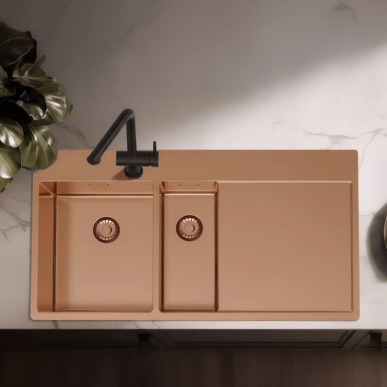 Pure.Sink Exclusivo Copper 1.5 sink with draining board 100x52 cm Tapwing left PEX3418100LT-62