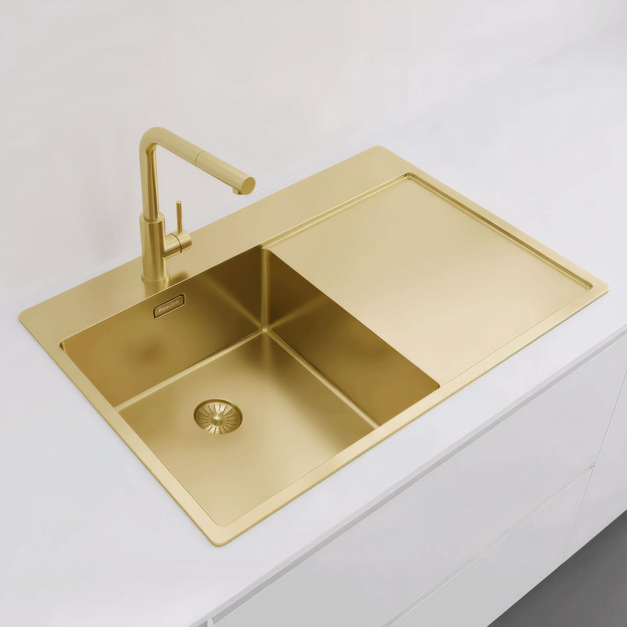 Pure.Sink Exclusivo Gold sink with drainer 78x52 cm Tapwing left PEX4078LT-60.