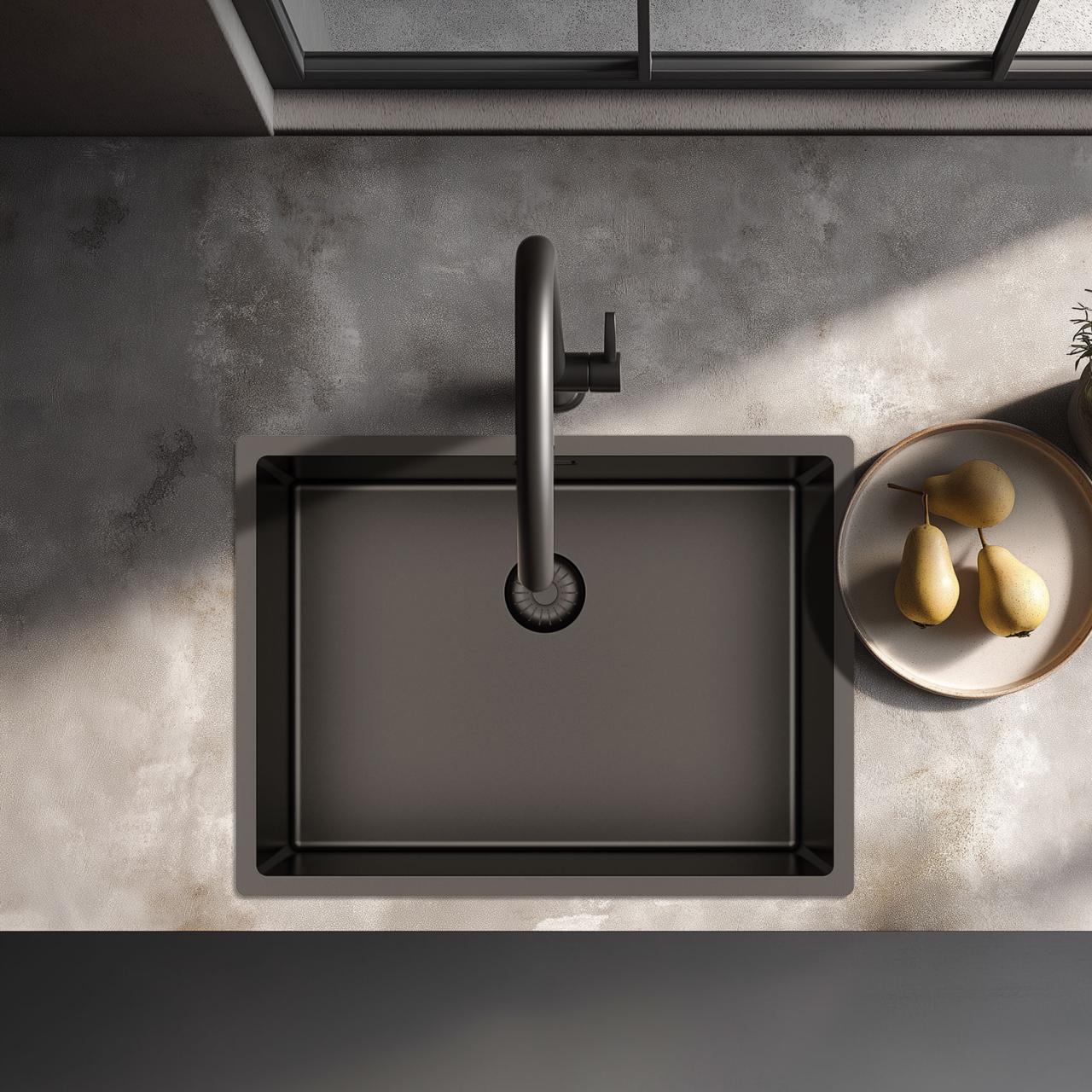 Pure.Sink Exclusivo Gun metal sink 55x40 cm 10mm radius undermount, flush mount and top mount PEX5540-61