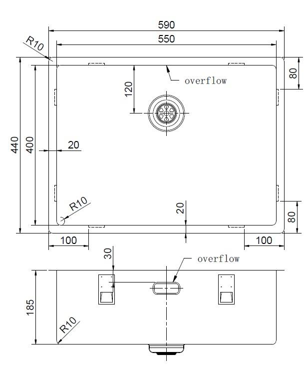 Pure.Sink Exclusivo Stainless steel sink 55x40 cm 10 mm radius undermount, flush mount, and top mount PEX5540-02