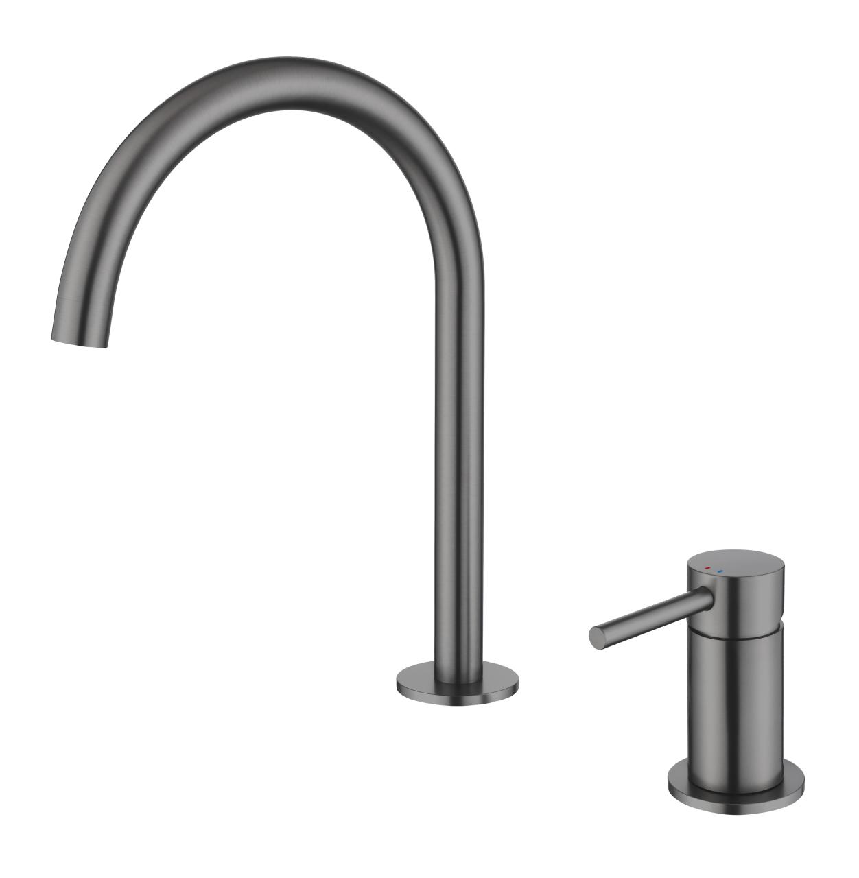 Pure.Sink Luxion 2-hole Gun metal kitchen faucet with round spout PLX2HR-61