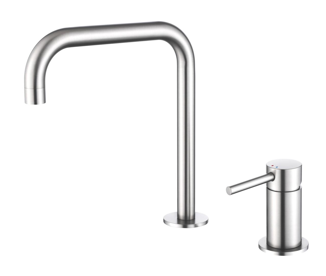 Pure.Sink Luxion 2-hole solid stainless steel kitchen faucet with U spout PLX2HU-02