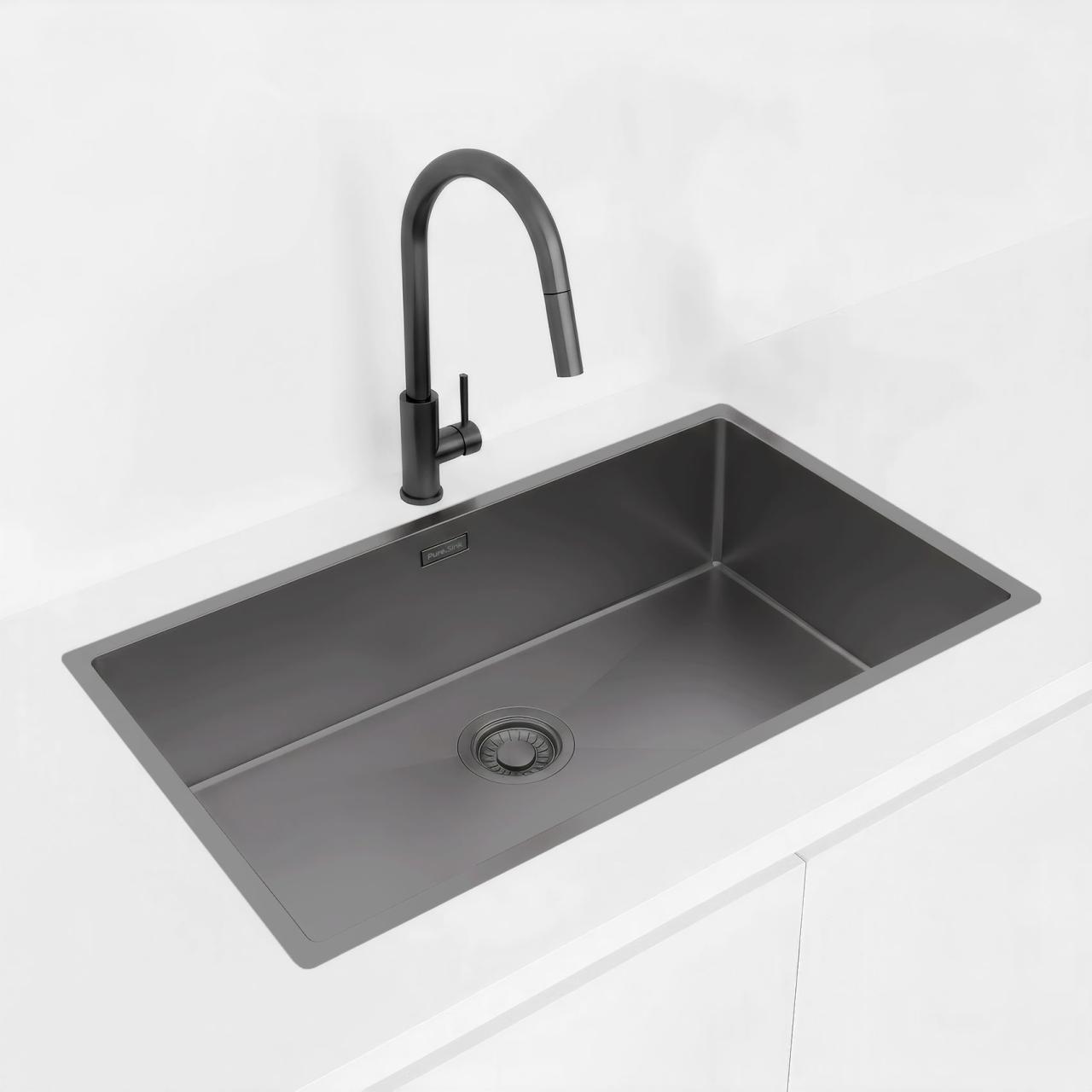Pure.Sink Luxion Large Gun metal sink 74x40 cm undermount, flush mount, and top mount PLX7440-61