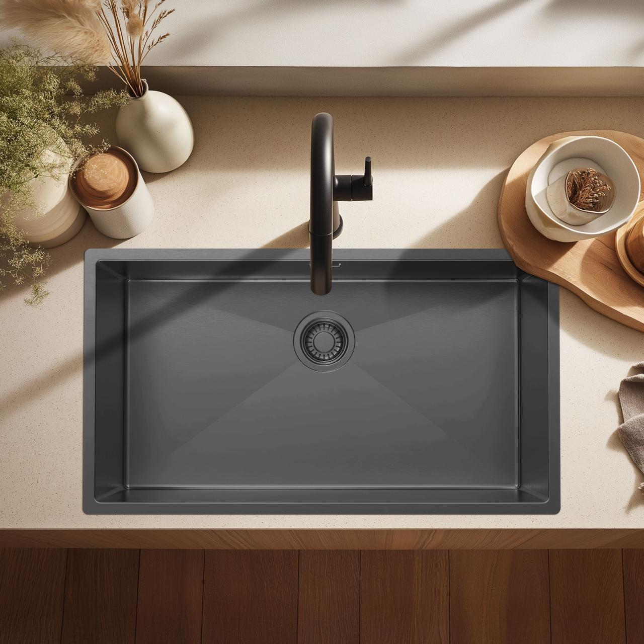 Pure.Sink Luxion This sink is a handmade masterpiece, crafted with traditional craftsmanship and attention to every detail. Made from high-quality 304 stainless steel, it offers excellent durability, hygiene, and corrosion resistance. The sound-absorbing elements minimize noise, ensuring a quiet, comfortable, and sustainable kitchen experience. The sink comes with mounting clamps and a template for accurate and neat cutting.