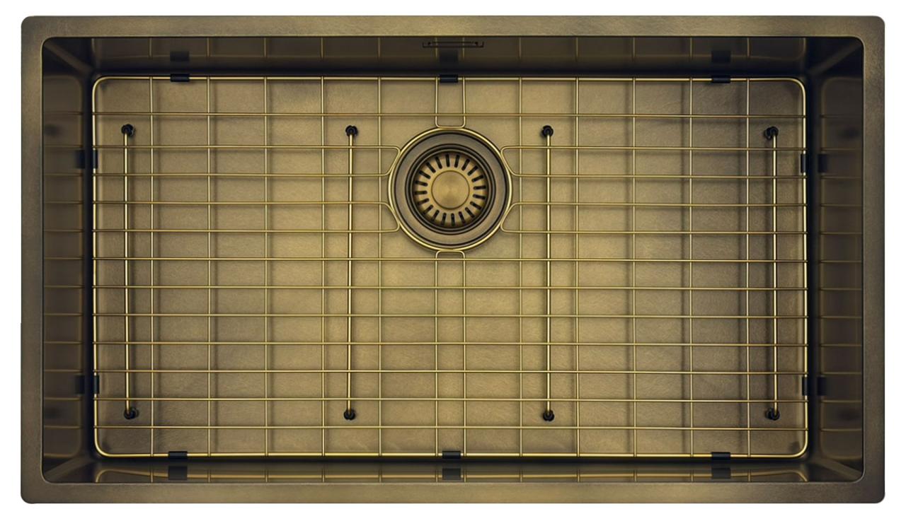 Please note: due to the luxurious PVD coating, the sink is sensitive to scratches. Therefore, the coating is only covered by warranty when the included bottom rack is actually used. This rack prevents direct stress on the PVD surface and protects the sink during daily use. Damage caused by the use of sharp objects is not covered by warranty.