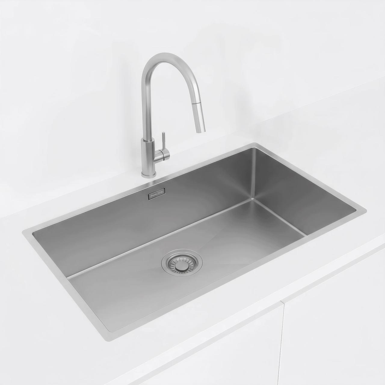 Pure.Sink combines style, functionality, and innovation in its collection of sinks and kitchen faucets. With elegant EU design, the products are perfectly suited for modern kitchens. The stainless steel sinks feature an integrated plug for optimal hygiene and offer three installation options: undermount, flush mount, and inset mount. The pressed design ensures seamless construction and easy cleaning.