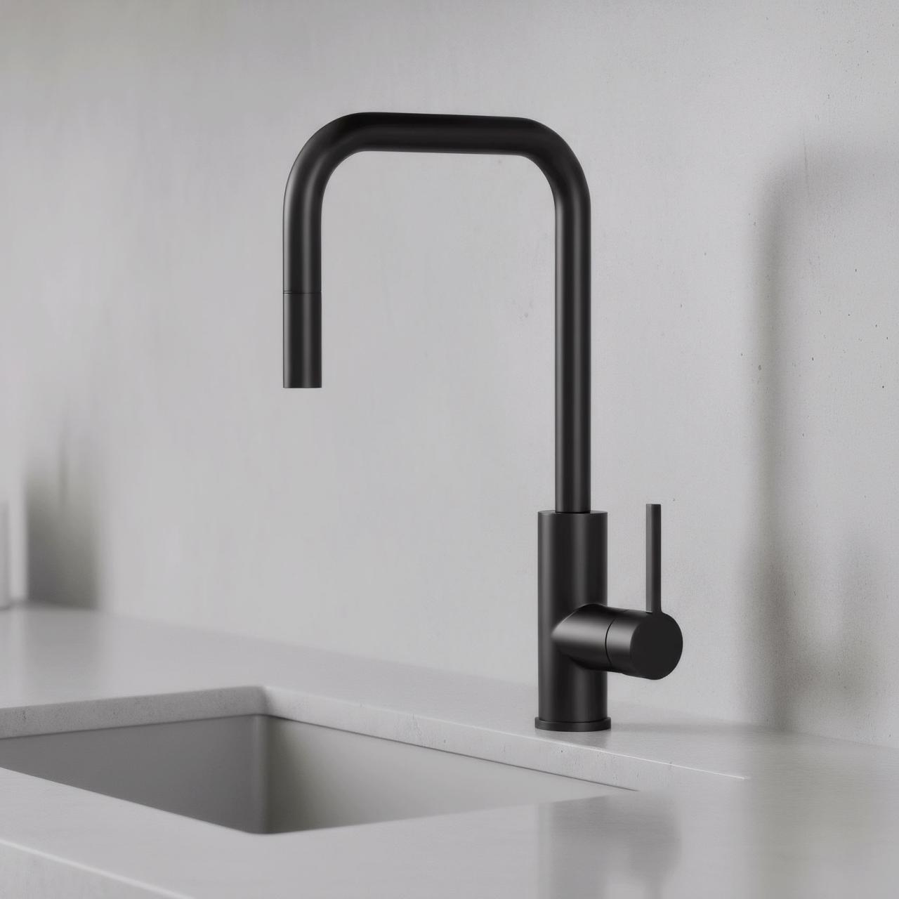 Pure.Sink Luxion Matt Black Square Kitchen Faucet with Pull-Out Spout PLXSQUA-10