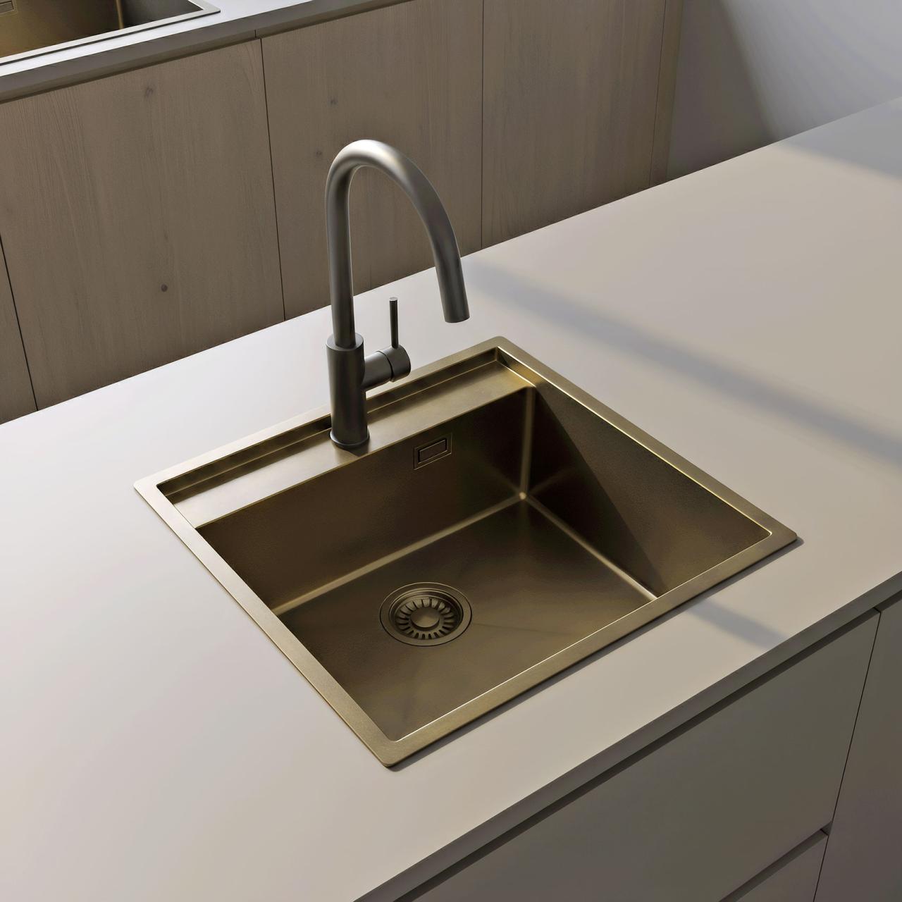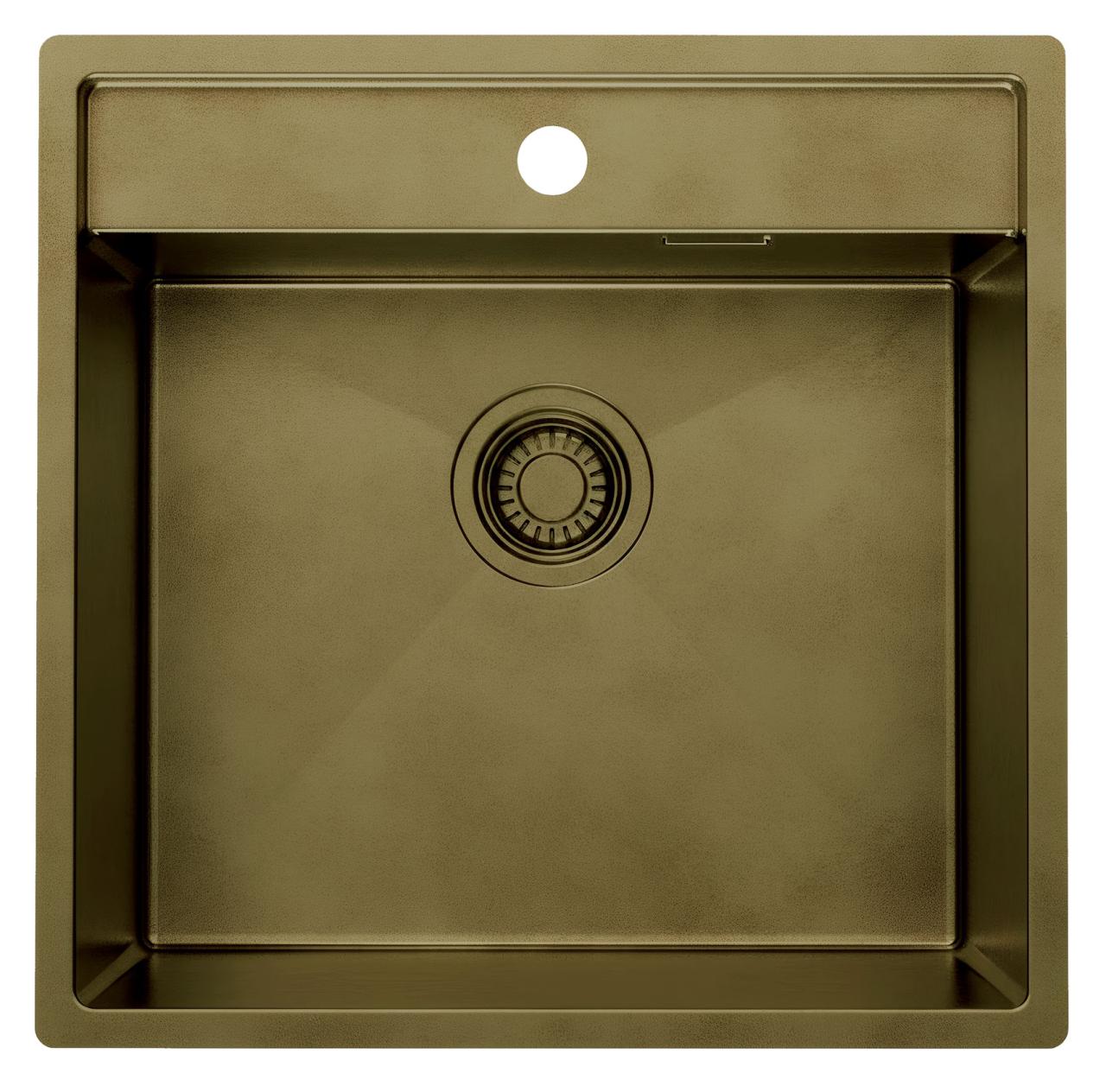 Pure.Sink Luxion PVD Antique Bronze sink 51x50 cm Tapwing with tap hole bench and bottom rack PLX5150T-64